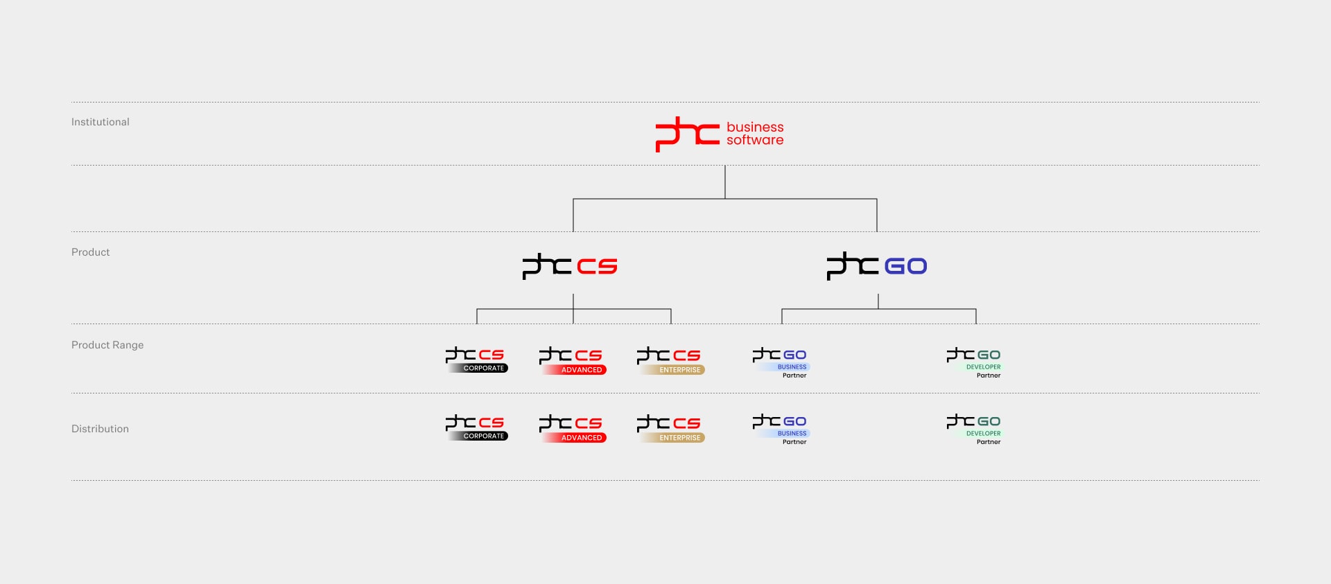 Instead of having 2 different sub-brands, the products’ identities were redesigned under the PHC main brand, based on this core identity, and not on different identities distants from the company’s brand: